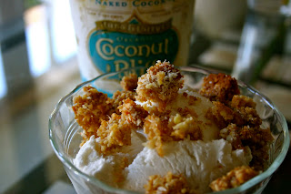 Preheat oven to 375. Add coconut oil to an 8 inch cake pan and let it melt in the oven while you make mixture.